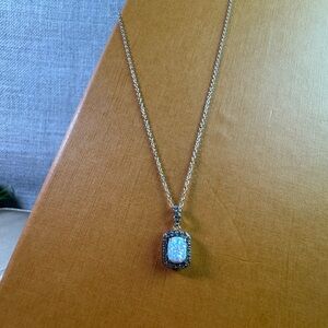 Lab Created White Opal Rectangle Shape Pendent 18” marked KA 1772 sterling silver 925 Italy NWT bought in JCPenney