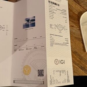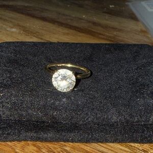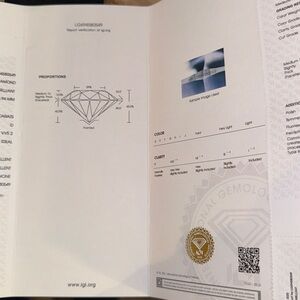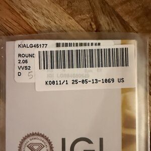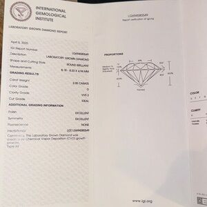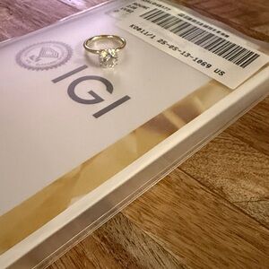 Size 4 3/4. In pristine condition. 14k solid yellow gold. 2.05 carat lab diamond. Comes with certificate. Has serial number on the edge of bezel please note: ( jeweler placed the diamond obscuring the numbers, but you can see some of the ending numbers.) A professional jeweler can rotate the diamond so you can see all the numbers.