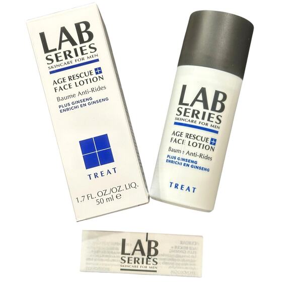 Excellent Skincare for Men-Hydrate and Repair! A New in Box 1.7 oz/50 ml bottle of Aramis Lab Series Age Rescue Face Lotion with energizing ginseng. This lotion offers an anti-aging treatment in a lightweight gel lotion formula that fights the look of wrinkles, revitalizes and improves firmness and elasticity. Perfect to keep your skin revitalized and younger looking. # 5470