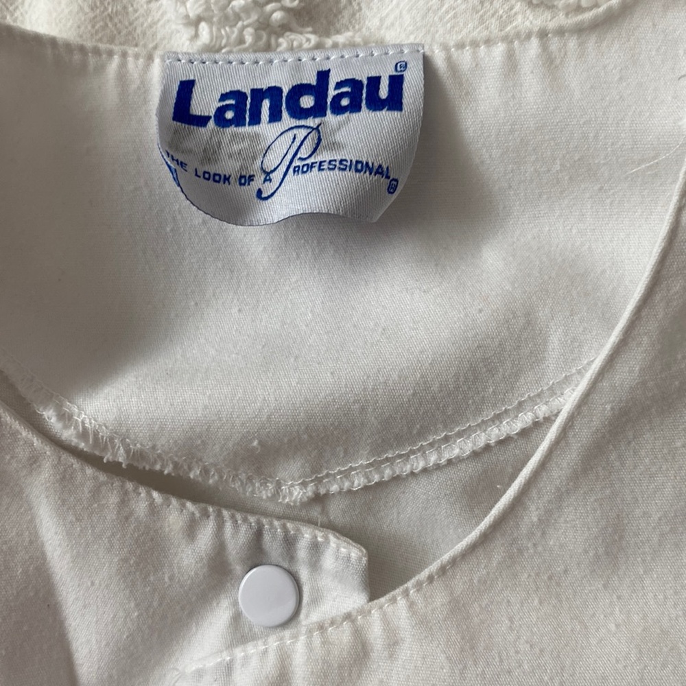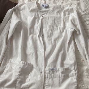 Landau lab coat. Good used condition- small stain pictured- when closed, it doesn’t show. Used for dental assisting school on and off 9 months. One size
