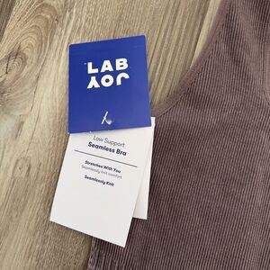 This LabJoy seamless scoop active rib bra in a rich brown tone is designed for low-impact activities and casual wear. Made with a soft, stretchy ribbed knit and wide bottom band for light support and comfort. The pull-on style and scoop neckline offer a flattering, easy fit. Brand new with no flaws.
