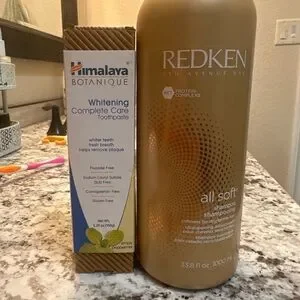 Large Redken All Soft shampoo bottle. Labeled with Redken logo and product name. Softening formula indicated. Easy to spot on shelf.