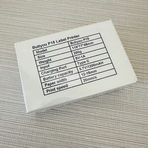 Mini-size wireless Bluetooth-connected Butiyou thermal label printer for Convenient & Fast printing, easy to create labels from smart mobile devices(only support for android & iphone,not for PC), small enough to slide into your pocket, easy to carry anywhere.(Package list: P15 label printer x 1, 12 mm x 40 mm white label paper x 1, USB cable x 1, manual x 1. Tips: the charging plug is not included)