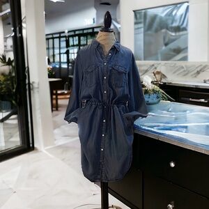Label Of Graded Goods super soft rayon jean drawstring waistband tshirt dress by H&M. Super soft. With pockets. Gently worn. Perfect light summer dress. Women’s size 12. From waist to hem 18”