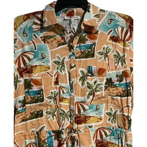 Label Of Love Peach Tropical Print Linen Blend Tie Waist Romper M