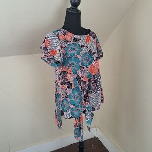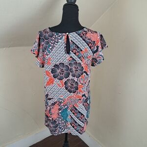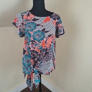 Label Rachel Roy Women's Floral Short Sleeve Tie Front Textured Blouse Size M