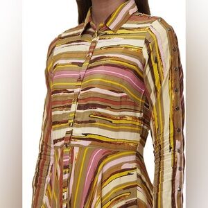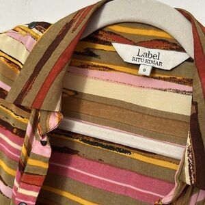 Label Ritu Kumar 100% viscose marine stripe multi spring snap down dress midi