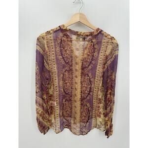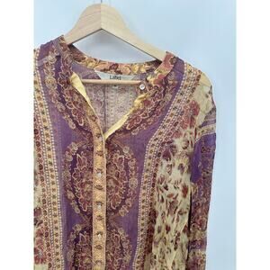 Label Ritu Kumar Blouse Women Medium Button Front Sheer Viscose Boho Hippie