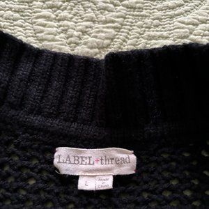 Label + Thread Brand Ladies 100% Merino Wool Cardigan Size Large Black and Dark Brown