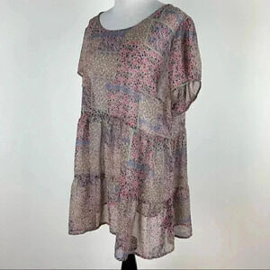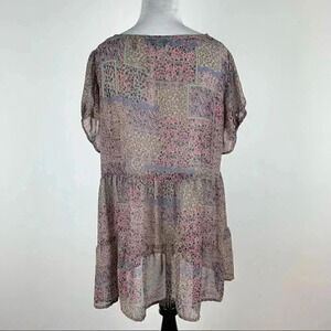 Label be womens ditsy top size 46 14 Multicolored floral sheer patchwork tunic