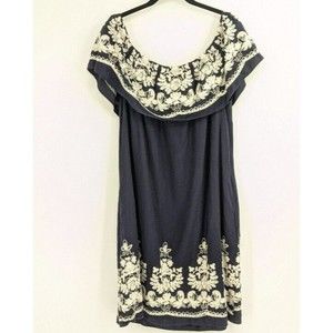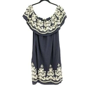 Label by Five Twelve Off Shoulder Dress Navy White Embroider M Linen Blend.