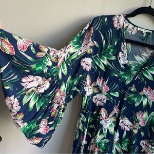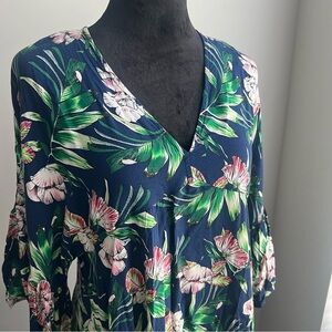 Embrace a vibrant look with this floral women's top. Featuring a stunning green and pink pattern, this top is perfect for any occasion. Enjoy the comfort and style it brings to your wardrobe.