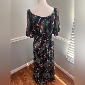 Label of Love Navy Blue Tropical Print Maxi Dress Off Shoulder Boho Large