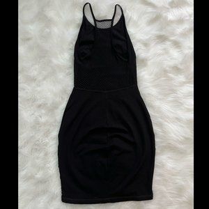 This black mini-dress has fish-net cut-outs on the sides and on the back. This is a size S and was brought from Brazil. It has a very smooth and stretchy material and is in very good condition.
