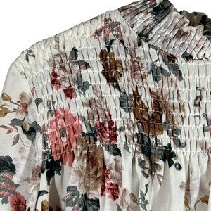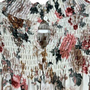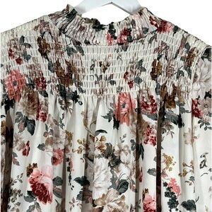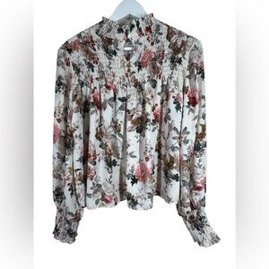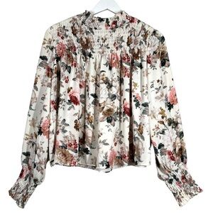 Labels Of Freedom Top Women's Size S Floral Smock Mock Neck Balloon Long Sleeve