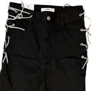 Labijou Black Lace Up Skinny Pants Silver Side Grommets Stretch Fit Size M