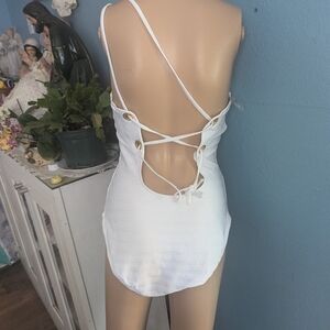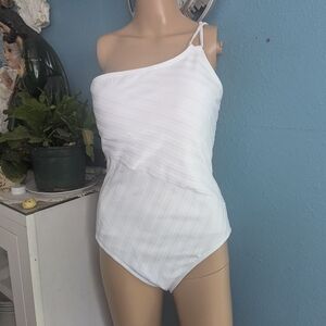 This stylish white one piece swimsuit is perfect for a day at the beach or pool. Comfortable and chic, it's a must-have for your child's swimwear collection.