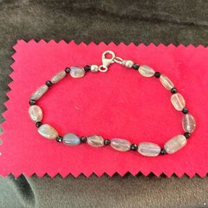 Labradorite & Black Spinel Sterling Silver Bracelet 7.25”