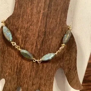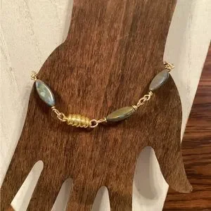 Handmade by Shelly, one of a time fashion jewelry. Brand new. Beautiful labradorite links with gold tone wire and magnetic closure. Approximately 7”.