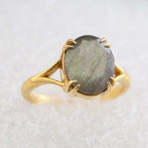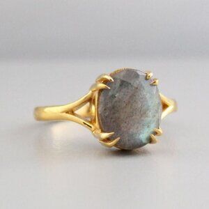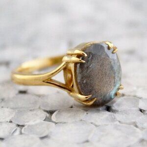 Labradorite Cocktail Ring: Gold Polish, Handmade Gemstone, Sterling Silver Ring