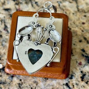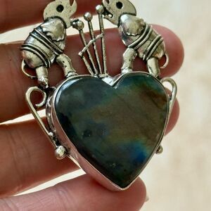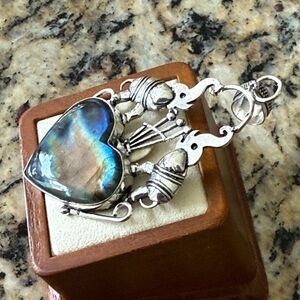 Labradorite Gemstone Artisan Heart Pendant Silver Necklace Bali Elephant Motif