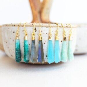 These genuine labradorite gemstone drop earrings feature a unique geometric angled shape, designed to catch the light and showcase the stone’s mesmerizing blue flash. The earrings hang approximately 1.5 inches, making them a perfect statement piece while remaining lightweight & comfortable for everyday wear.