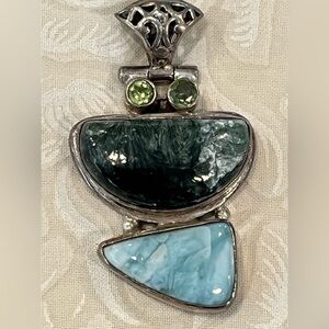 Labradorite Larimar and Peridot 0.925 Silver Necklace Pendant
