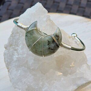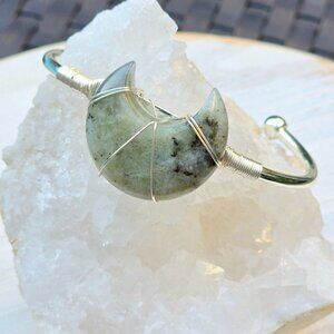 Labradorite Moon Wire Wrap Bracelet w/ 925 Silver Over Copper – Adjustable – NWT