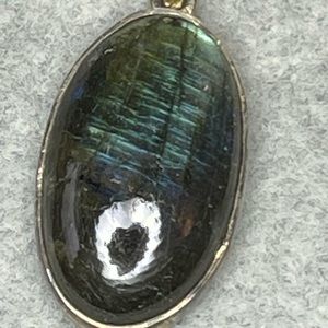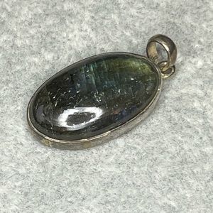Labradorite pendant, approx 1 in in height. .925 sterling silver.