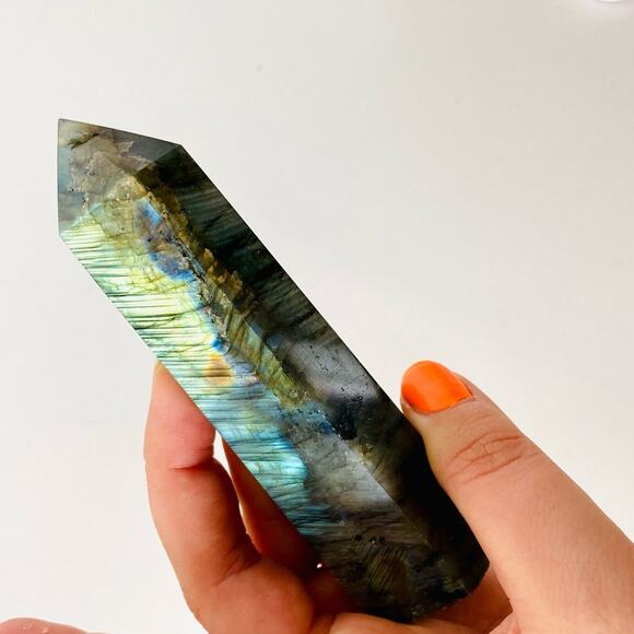 Labradorite Polish Genuine 4” Crystal Point Boho Gypsy Meditation Yoga Gemstone
