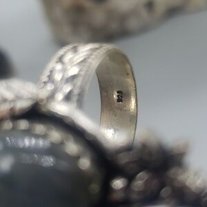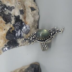 Gorgeous light green glowy labradorite ring. Antique style finish. 925 stamped. Beautiful detail.