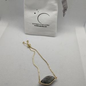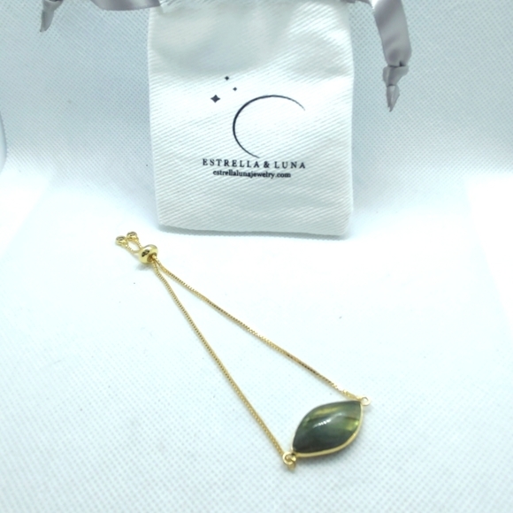 adjustable labradorite (yellow green glow) 18k gold plated brass bracelet. Estrella & Luna