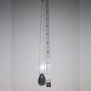 Please see pictures with measuring tape for length of necklace and size of stone.