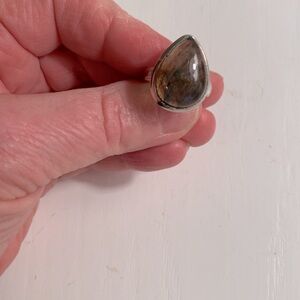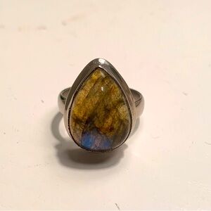 Blue fire labradorite stone set in 925 sterling silver raindrop setting. Excellent condition. Size 7.5. Labradorite is thought to have many metaphysical properties such as healing, protection, inspiration and others. It’s a very interesting stone to research