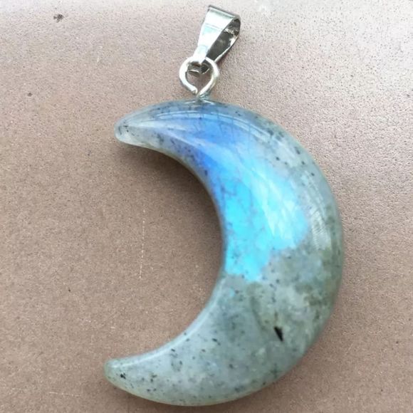 This is a cute tiny blue and gray labradorite crecent moon pendant. All Items are negotiable so please feel free to make an offer or add to a bundle for a customized discount.
