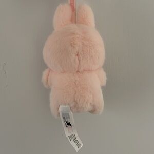 This charming pink plush bunny features a soft, fuzzy texture and a delightful cartoonish design. With its long ears and wide-eyed expression, it offers a cuddly and whimsical companion for any toy collection. Its round, plump body and small paws add to its endearing appeal.