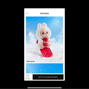 Coca-Colathemed Labubu. Happy Factor. Box never opened. Sold as is. no guarantee it is in fact happy factor. Authentic. Bought from Pop Mart and delivered from them.