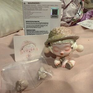 Authentic pop mart exciting macaron labubu: lychee berry!! Had its card!! There’s spot under her teeth that’s barely noticeable but just needs a clean!!