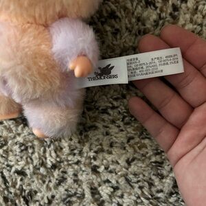 Adorable pastel plush toy with a cute smile. Features soft pink, orange, and cream colors.