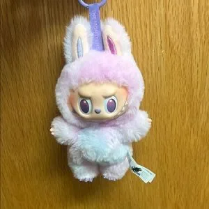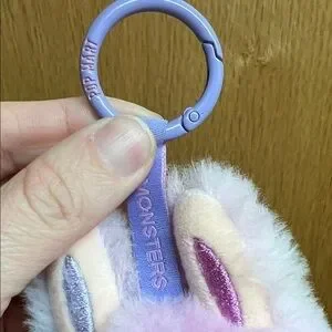 Cute pink and pastel plush keychain in a bunny monster design. Soft, fluffy fabric with pastel pink and light blue accents. Easy to attach and great for bags or gifting. Charming pink plush adds playful style. Color is slightly coming off on nose, this does not come with the box