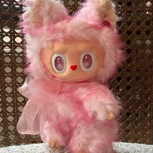 Adorable handmade pink gradient cat style labubu doll with a soft and dreamy look.