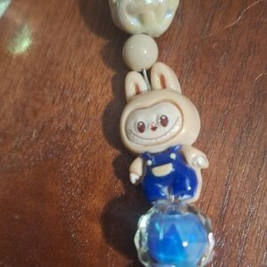 Labubu Beaded Phone Lanyard/ Bag Charm with Blue Heart Charm