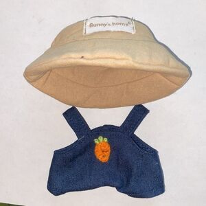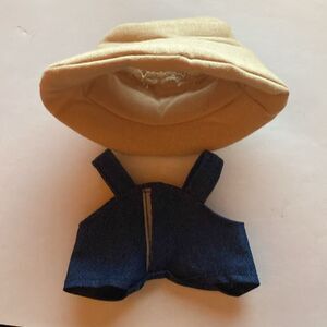 Labubu Blue Denim Carrot Overalls with Tan Bucket Hat Set