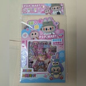 Cute pink Mokoko character carry bag with other Labubu friend accessories. Includes themed reusable plastic tote, liquid keychain, mini notebook with pen, premium sticker sheets, claw hair clip and mystery box pen. Perfect ready-to-gift set for Labubu lovers. All items are new.