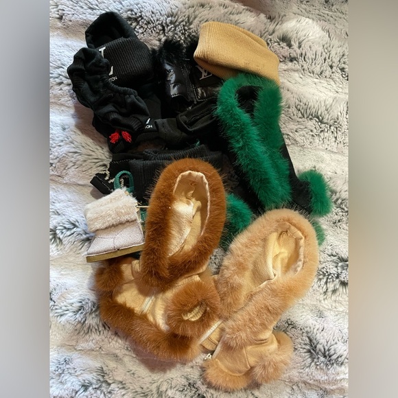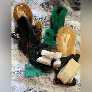 Overalls, winter fur jackets, beanies, sweatsuits, boots, etc.