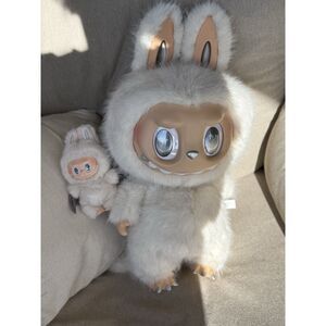 The Labubu Custom Mini Angel Plush Doll Pendant is a unique collectible item inspired by the character The Monster from the animated TV show "Us". Standing at 6 inches tall and made of plush material, white/Grey pendant is a must-have for fans of the Monster franchise. Perfect for adding a touch of whimsy to any outfit, this miniature plush doll is a fun and playful accessory for anyone looking to showcase their love for animation. Made in the United States, this pendant is a great addition to any collection or a perfect gift for Japan Expo enthusiasts. ** Large one not included**