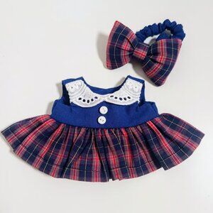 Handmade Disneyland inspired VIP Tour Guide costume with matching bow designed to fit Pop Mart Labubu dolls including Macaron, Have a Seat and Big into Energy series. This outfit is crafted with custom fabric and captures the classic look of a Disney Parks tour guide uniform paired with a coordinating bow for extra charm. Perfect for collectors and fans this outfit adds handmade detail and Disney magic to any Labubu display.