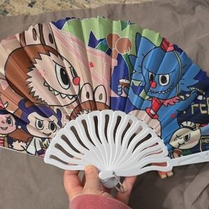 Delight your child with this vibrant hand fan featuring playful cartoon characters. Perfect for keeping cool and having fun. The fan showcases a mix of lively colors, making it a cheerful accessory for any outing.