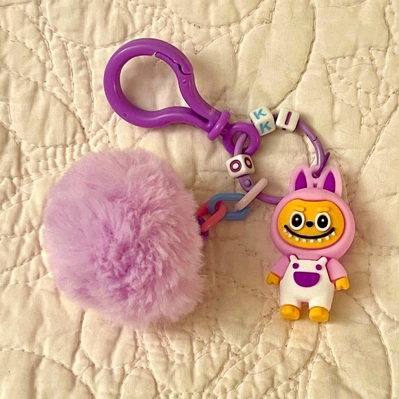 Purple Labubu Keychain with purple pompom.