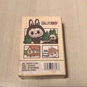 Colorful Labubu cartoon character photo cards. Features multiple characters in vibrant outfits. 55 piece photo cards, new in original box.